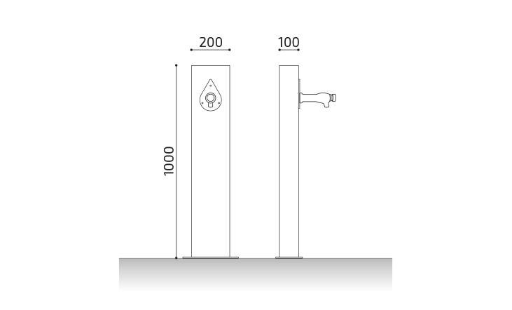 Font urbana Cor fabricada amb xapa d’acer corten. Fonts urbanes Cor amb aixetes de polsador a la part superior, subjectades amb placa en forma de gota.