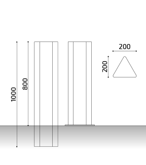 Pilona Trian fixa construïda amb estructura amb forma triangular. Pilones Trian amb xapa cilindrada d’acer corten per una major rigidesa i amb xapa frontal d’acer inoxidable setinat decorativa. Pilones fabricades per instal·lar a terra mitjançant encastament o per cargolar amb placa, segons necessitats del client. Ideals per delimitar espais públics, carrers, vianants…